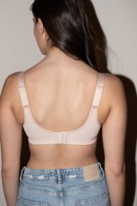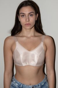 An ultra-minimizer bra with underwire, crafted from double-layered fabric. Reduces bust size by 2 cups, shapes and centers the bust.