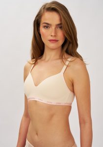 Jenna is a lightweight, softly padded wireless bra created for effortless everyday comfort. The gentle padding shapes naturally without pressure or marks, while the modern striped texture adds a fresh, trendy touch. Its sporty silhouette is perfect for home, studies, or busy days on the go. A branded underband gives it a cool, athletic feel, and slim straps keep the look feminine and easy.