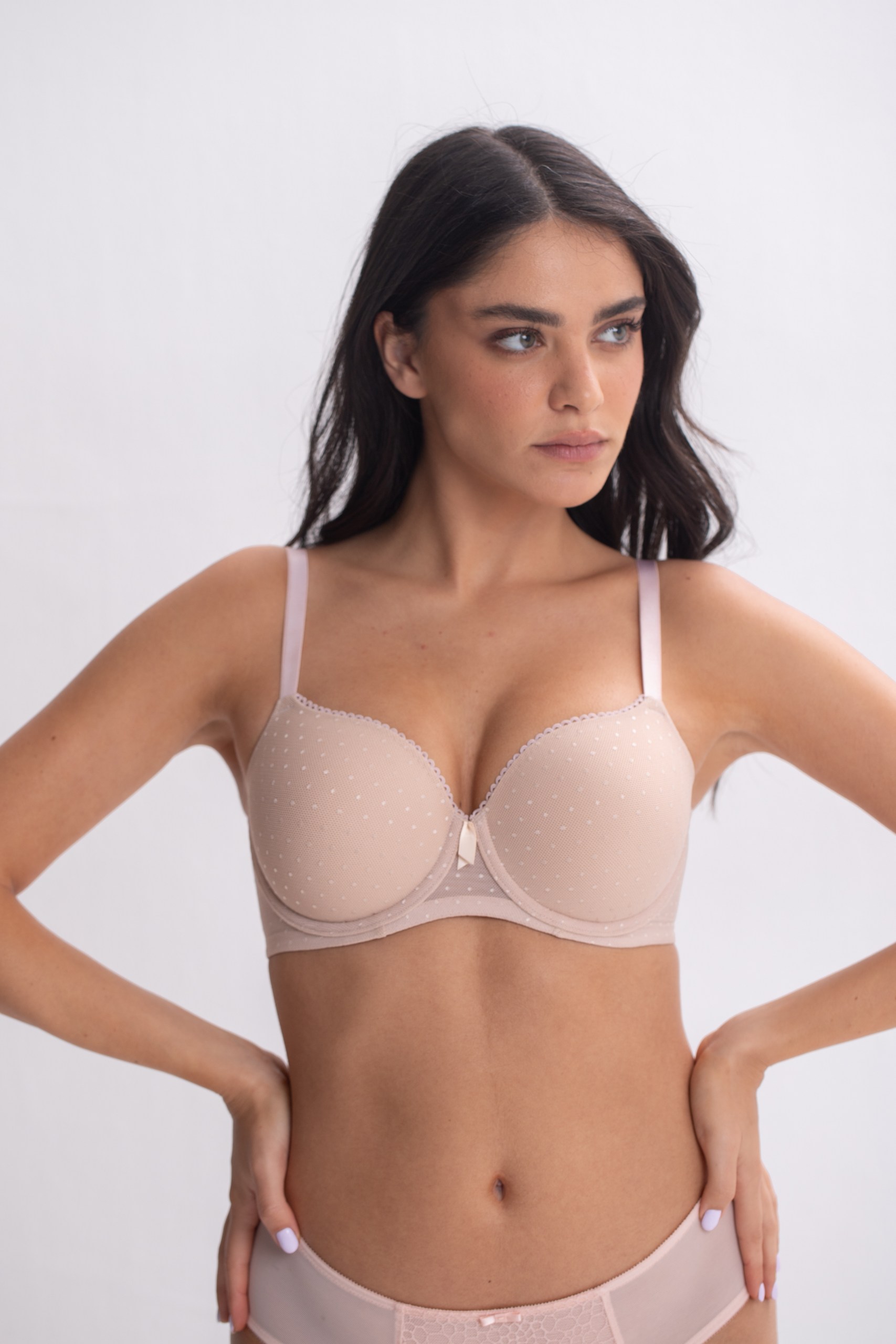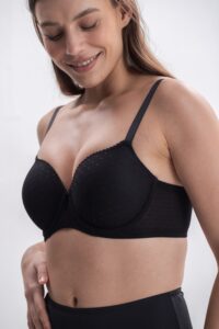 A full-coverage push-up bra with padding and flexible underwire for all-day comfort and reliable support. Designed to create a beautifully enhanced, refined silhouette, it’s finished with flat dotted lace for an elegant touch of chic.