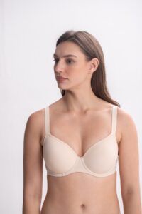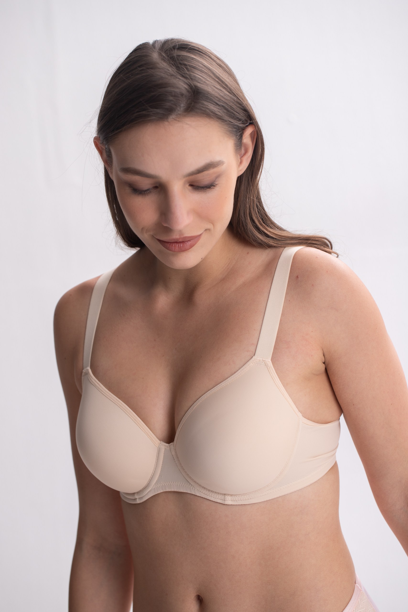 A functional full-coverage push-up bra with firm cups, designed to lift and center the bust. Sleek, classic design for versatile wear.